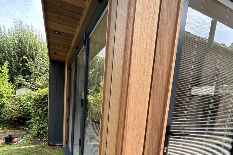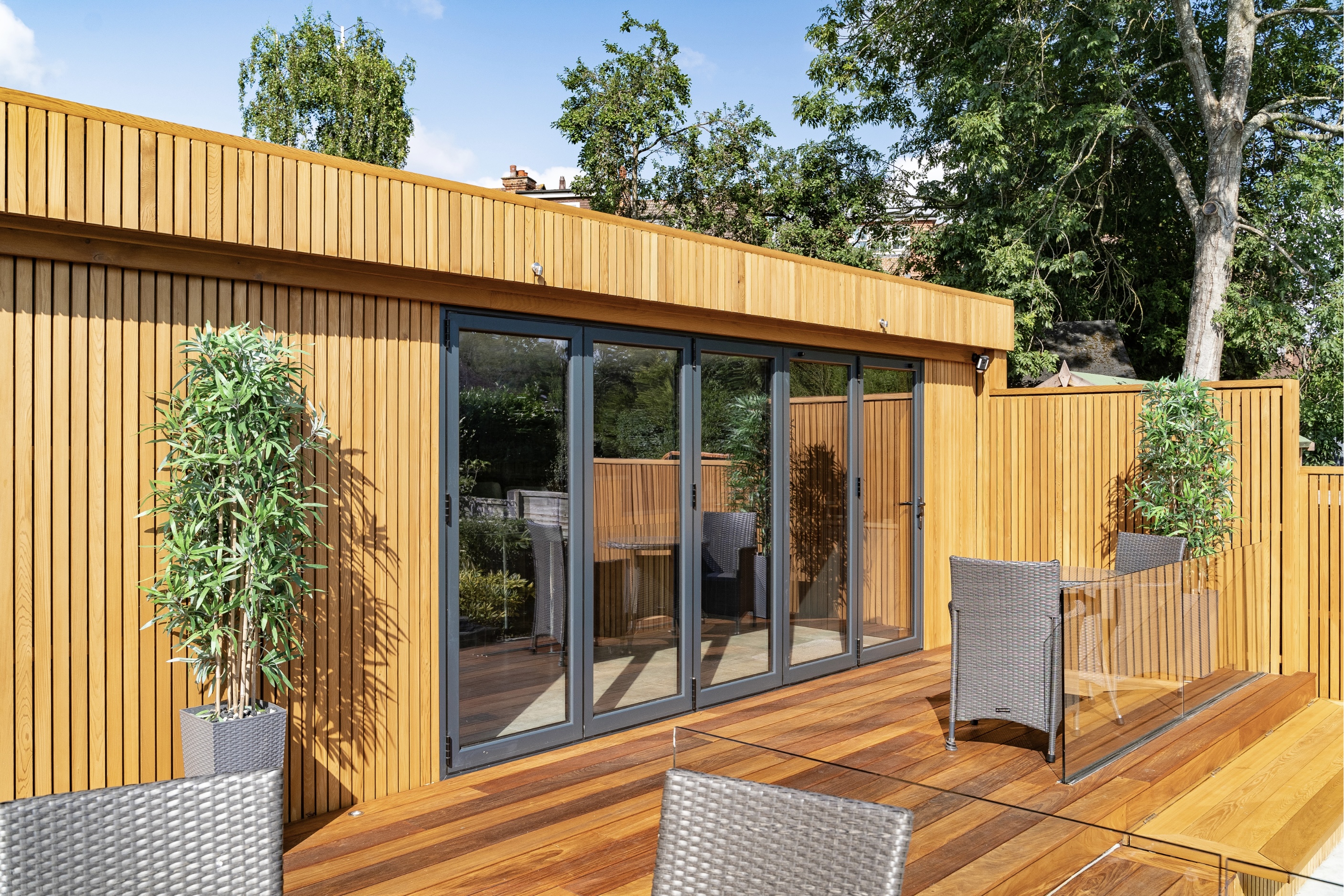 A more contemporary design we see on garden rooms a lot lately is using our fencing products to create a timber batten screening that can then be used as cladding. It provides a very desirable finish and character to any project. Slatted screens are a practical and affordable solution.