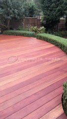 Where possible and depending on the time of year boards should be laid out on the deck frame for a period of time to acclimatise and allow final drying and help reduce shrinkage after installation***this should not be done in hot conditions or when direct sunlight is on the timber***. The frame should be built with larger section sizes of tanalised Softwood ideally 50x150mm or bigger as the frame will generally rot long before the Jatoba decking. We recommend some coats of further weather protection be added to the frame such as black bitumen to provide further longevity. Good drainage under the frame and ideally some air flow are essential to the life of the frame and also the stability of the decking boards on top. Frame centres are recommended at 400mm – 500mm with 450mm being the industry standard. Jatoba boards should be trimmed both ends to squared up and remove the wax ends. Jatoba Decking Boards should be securely fixed down where they cross every joist either with Spax Stainless Steel decking screws or with our Deckwise Hidden fix system.