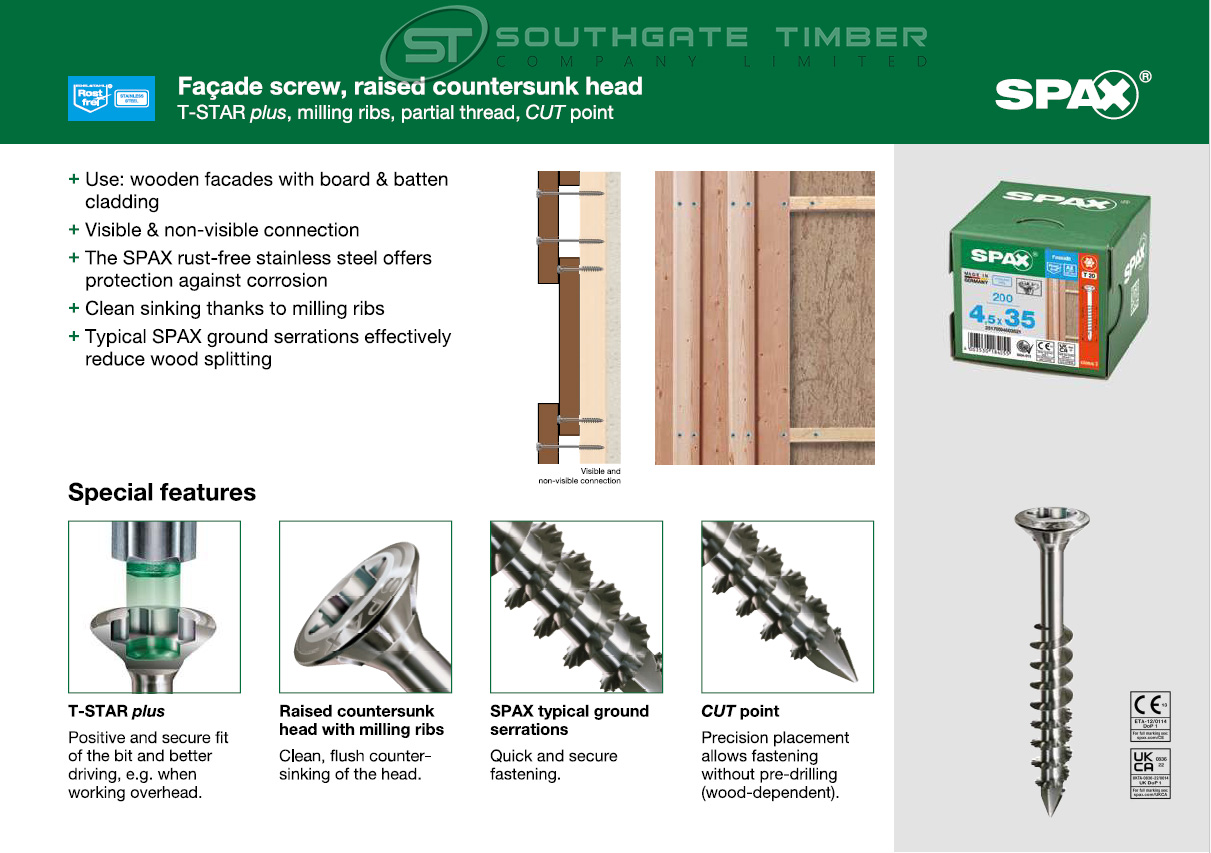 Spax Stainless 4.5 x 35mm x 200 box facade screw